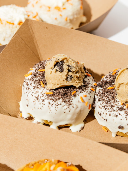 Edible Cookie Dough. Servin' Up Guilt-Free Nostalgia. Every flavor besides cookie butter is gluten free. Packed with OATS. Dairy free. 4g protein per serving!